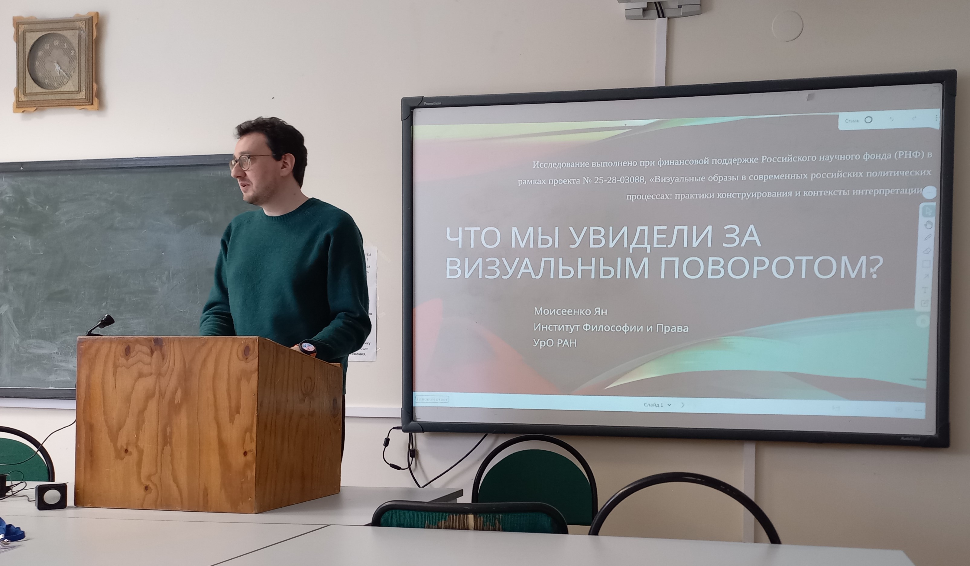 Трибуна учёного Ян Моисеенко, младший научный сотрудник отдела философии Института философии и права УрО РАН, выступил с докладом "Что мы увидели за визуальным поворотом?" на X Международном молодежном конвенте "Многомерность гуманитарного знания: от наследия к инновациям" (Уральский федеральный университет, Екатеринбург).