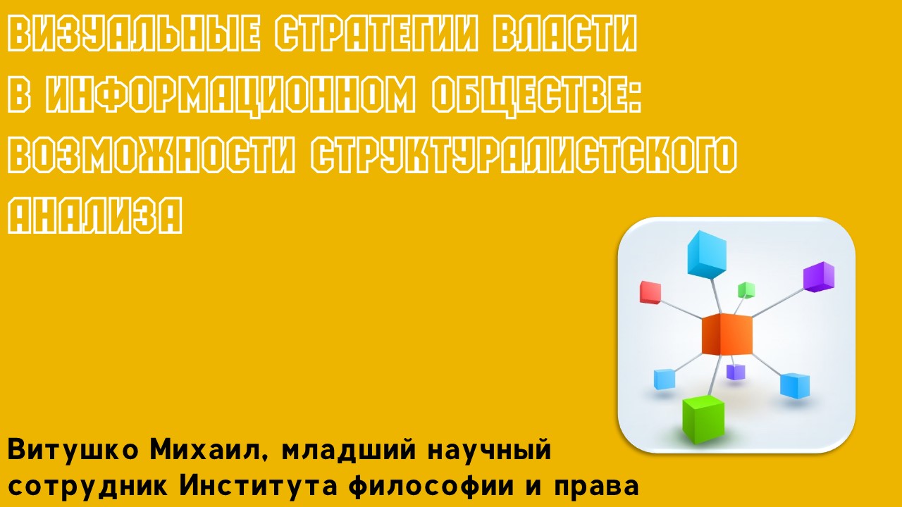 Трибуна учёного Михаил Витушко, младший научный сотрудник отдела философии Института философии и права УрО РАН, выступил с докладом "Визуальные стратегии власти в информационном обществе: возможности структуралистского анализа" на V Всероссийской научно-практической конференции "Культура и природа политической власти: теория и практика" (17 апреля 2026 года, Екатеринбург).