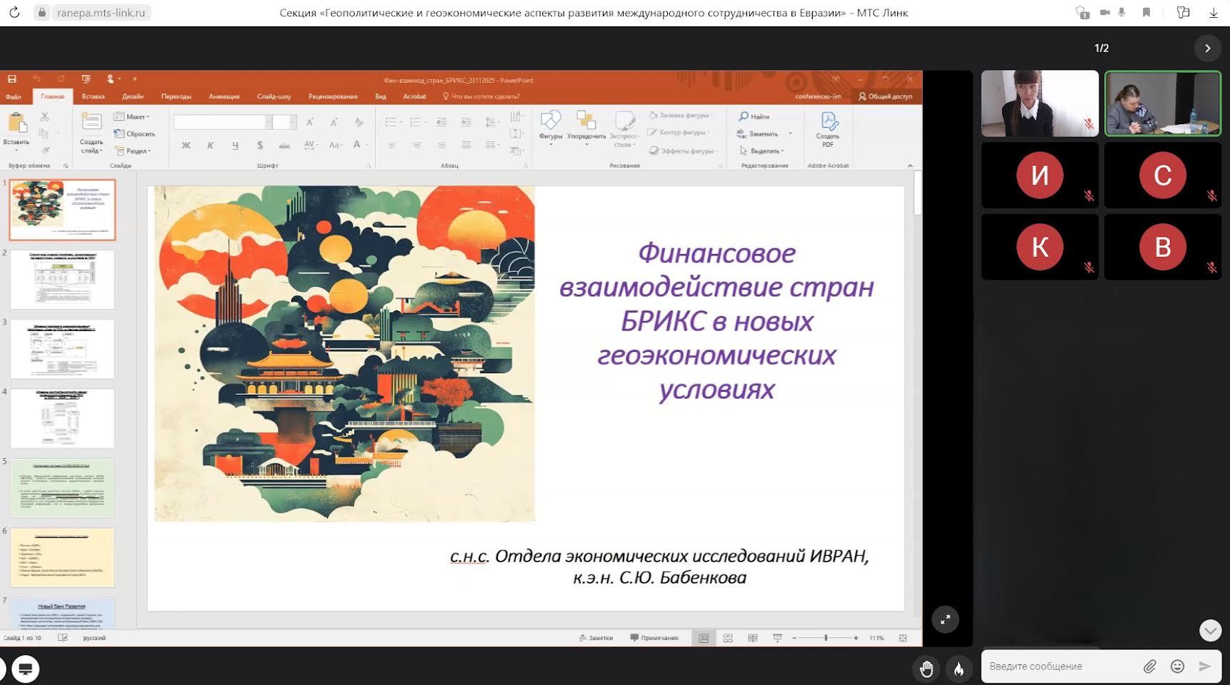 26-28 ноября 2025 года состоялась VIII Международная научно-практическая конференция "Большая Евразия: национальные и цивилизационные аспекты развития и сотрудничества". Мероприятие прошло на площадках трех московских вузов – Университета мировых цивилизаций, МИРЭА – Российского технологического университета, Российской академии народного хозяйства и государственной службы при Президенте РФ.