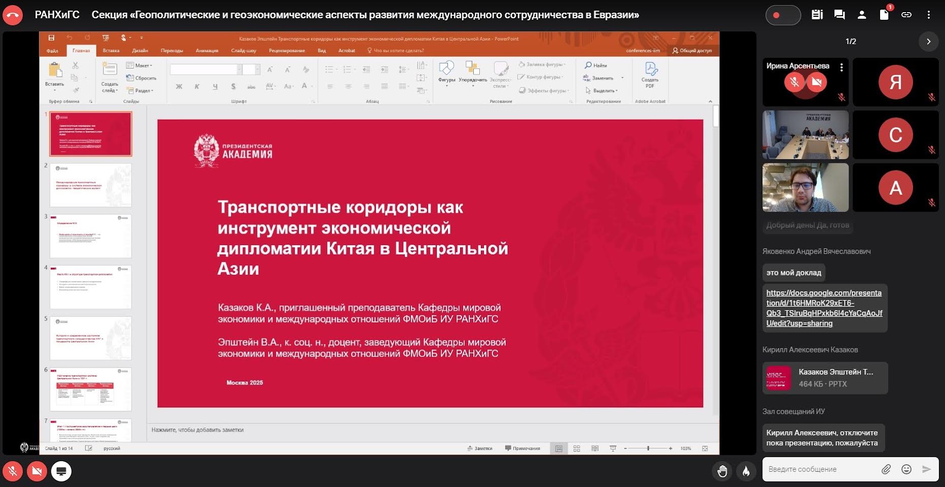 Ирина Арсентьева, ведущий научный сотрудник Института философии и права УрО РАН, выступила 28 ноября в рамках секции "Геополитические и геоэкономические аспекты развития международного сотрудничества в Евразии" с онлайн-докладом "Центральноазиатское направление медицинской дипломатии России".