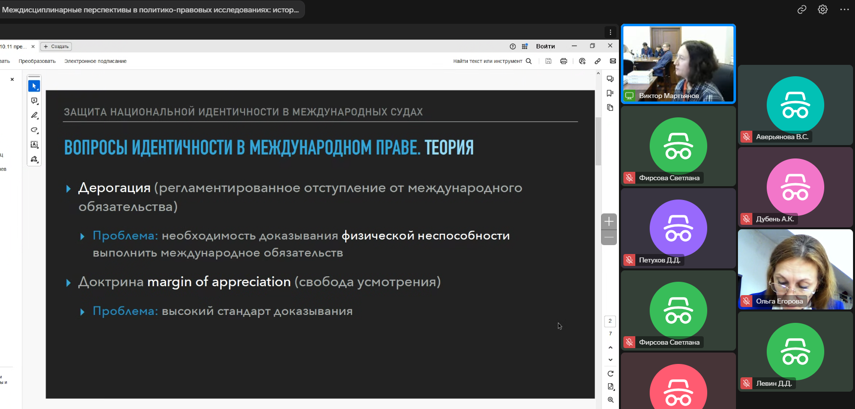 10 ноября 2025 года в Институте философии и права УрО РАН состоялся молодежный семинар «Междисциплинарные перспективы в политико-правовых исследованиях: историография, идентичность, цивилизация» в рамках II-ой Международной научной конференции «Философское осмысление историографических и перспективных задач современного публичного права».