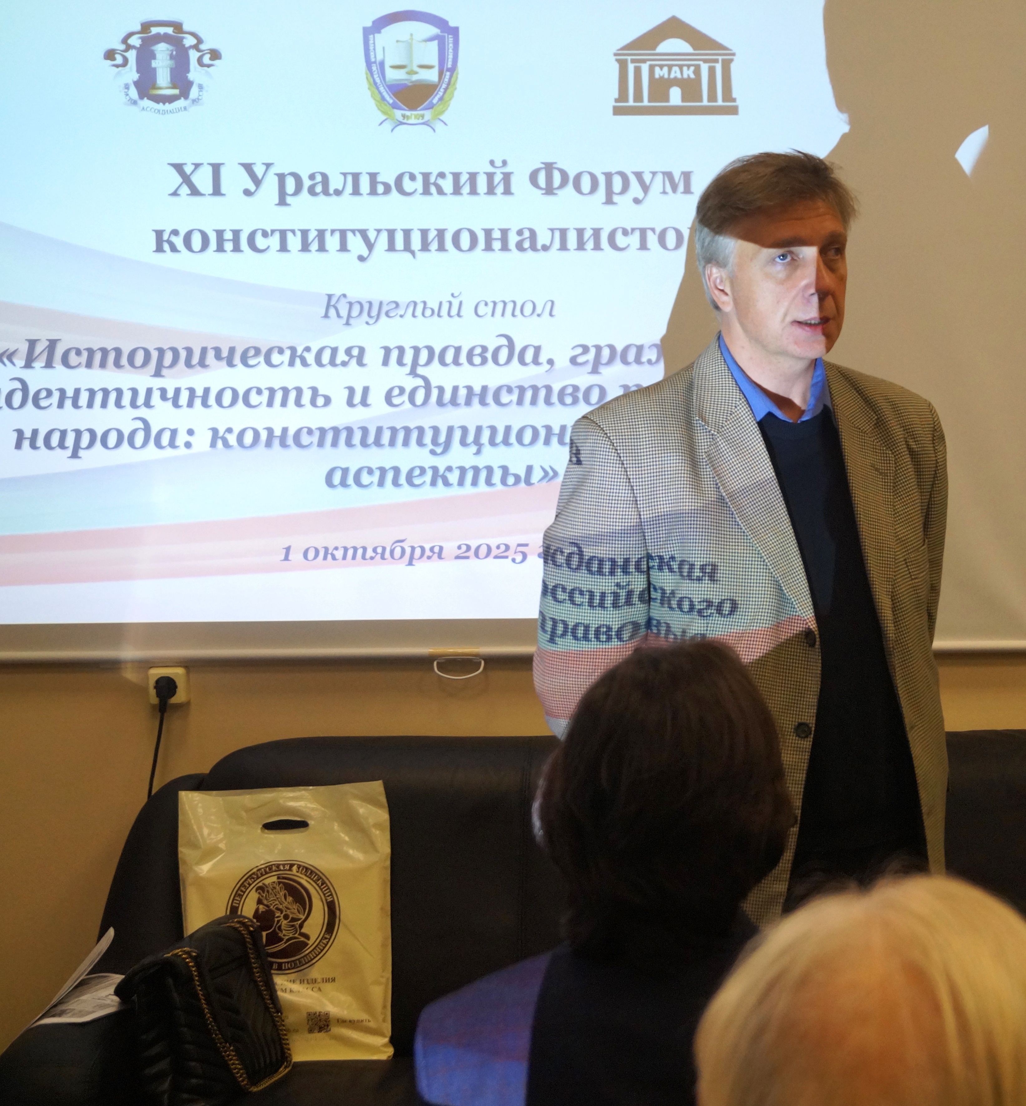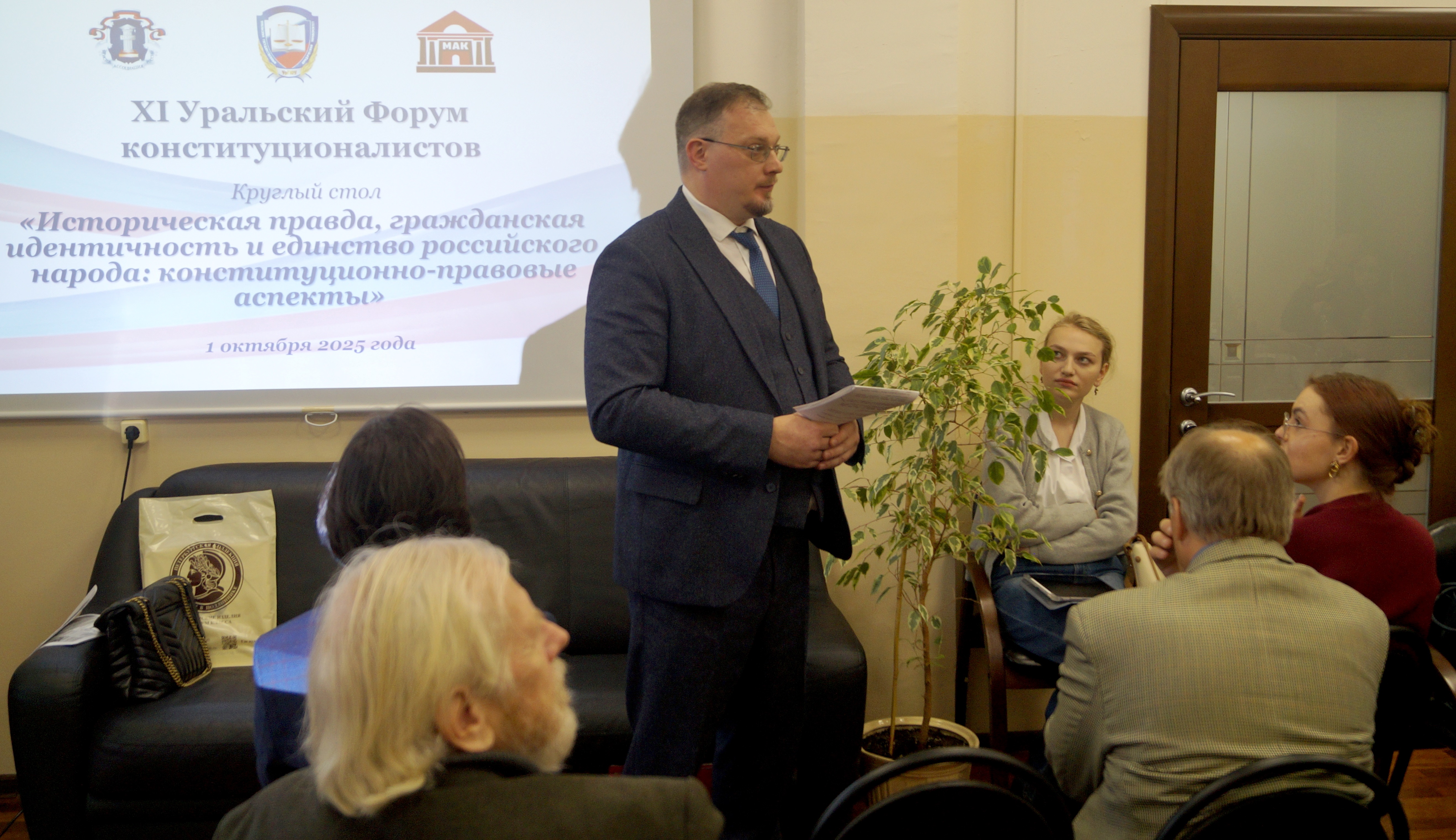 1 октября 2025 года в рамках XI Уральского форума конституционалистов на площадке Института философии и права УрО РАН состоялся круглый стол «Историческая правда, гражданская идентичность и единство российского народа: конституционно-правовые аспекты». Модераторами круглого стола выступили доцент кафедры конституционного права УрГЮУ имени В.Ф. Яковлева Валентина Руденко и старший научный сотрудник Института философии и права УрО РАН Наталья Панкевич.